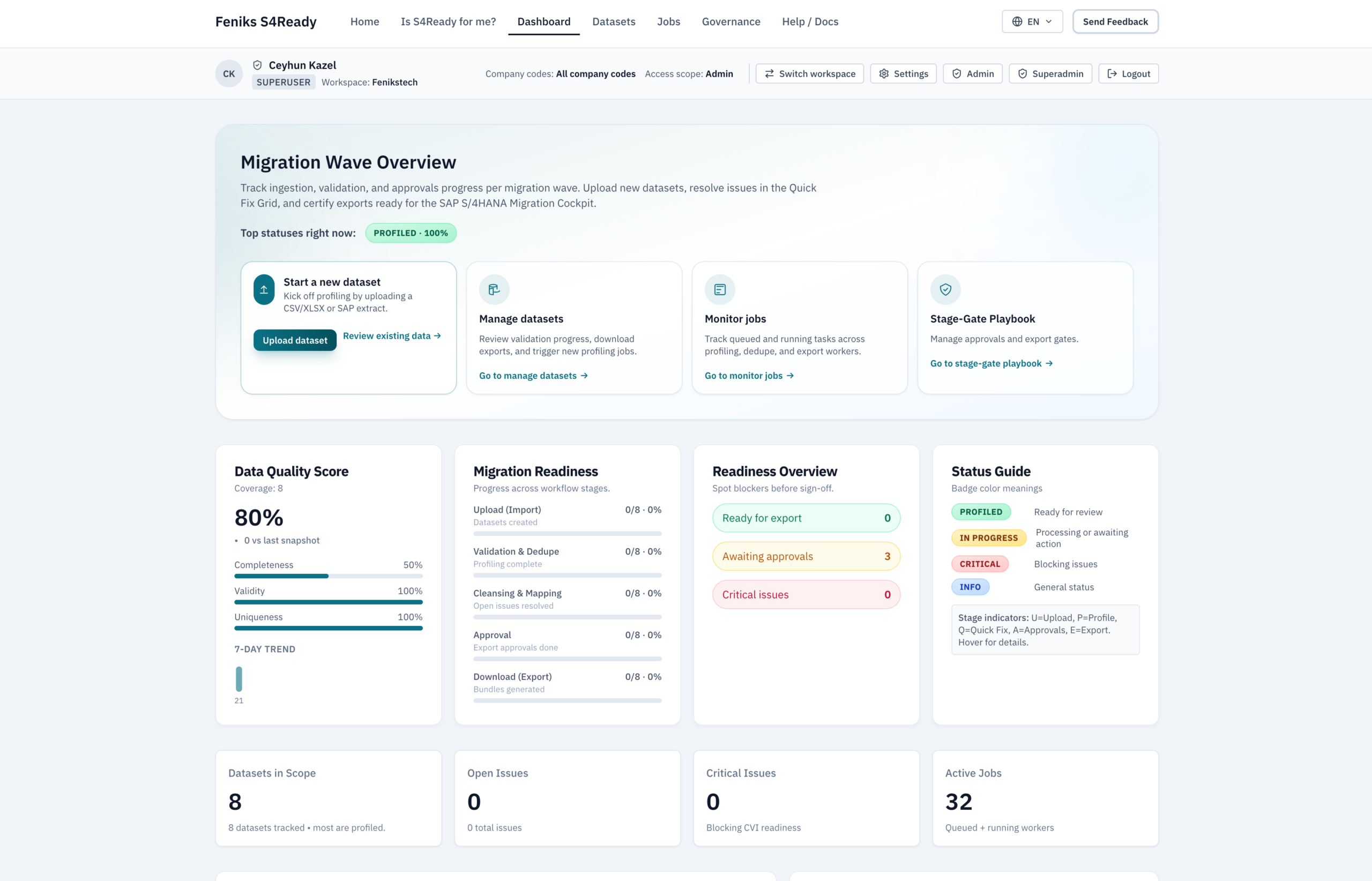 Cut data preparation from months to days. 98% first-pass Migration Cockpit acceptance rate.